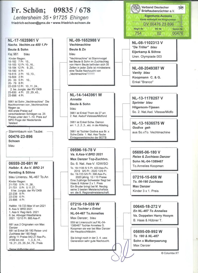 Oryginalny gołąb z hodowli Fr.Schön,szczegóły pochodzenia w rodowodzie,więcej informacji pod nr tel,:603 312 976,transport gołębi po wpłacie pieniążków na konto ,gołębie będą dostarczane kurierem 1-5szt 180zł