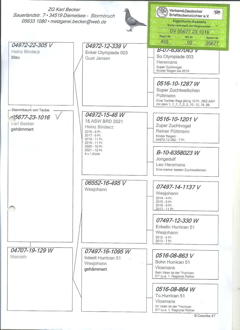 Oryginalny gołąb z hodowli ZG Karl Becker,szczegóły pochodzenia w rodowodzie,więcej informacji pod nr tel,:603 312 976,transport gołębi po wpłacie pieniążków na konto ,gołębie będą dostarczane kurierem 1-5szt 180zł
