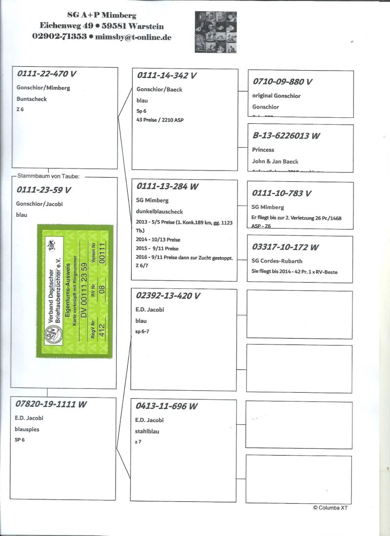 Oryginalny gołąb z hodowli SG A+P Mimberg,szczegóły pochodzenia w rodowodzie,więcej informacji pod nr tel,:603 312 976,transport gołębi po wpłacie pieniążków na konto ,gołębie będą dostarczane kurierem 1-5szt 180zł