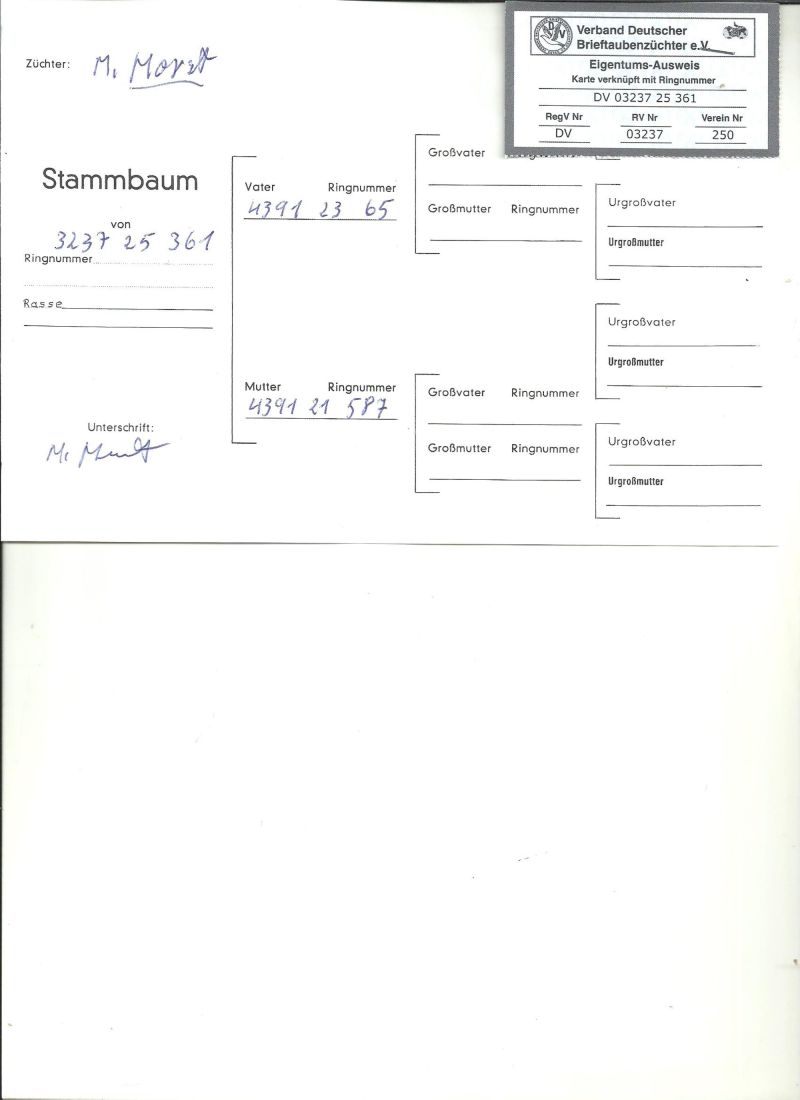 Oryginalny gołąb z hodowli Manni Horst,szczegóły pochodzenia w rodowodzie,więcej informacji pod nr tel,:603 312 976,transport gołębi po wpłacie pieniążków na konto ,gołębie będą dostarczane kurierem 1-5szt 180zł