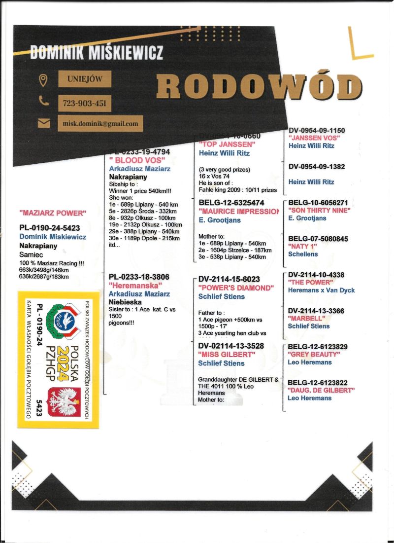Szczegóły pochodzenia w rodowodzie.