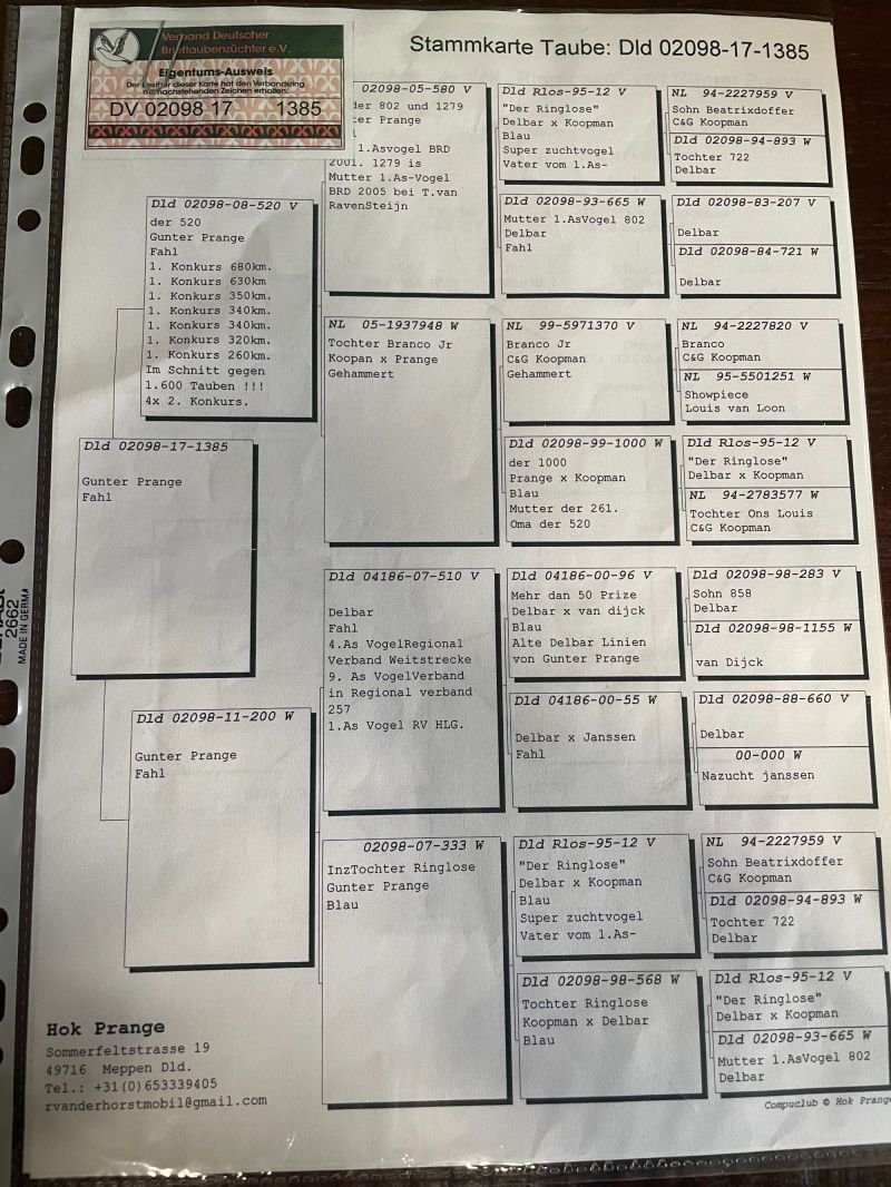 Oryginalny gołąb z hodowli Prange - Syn Sławnego "520"!!!!