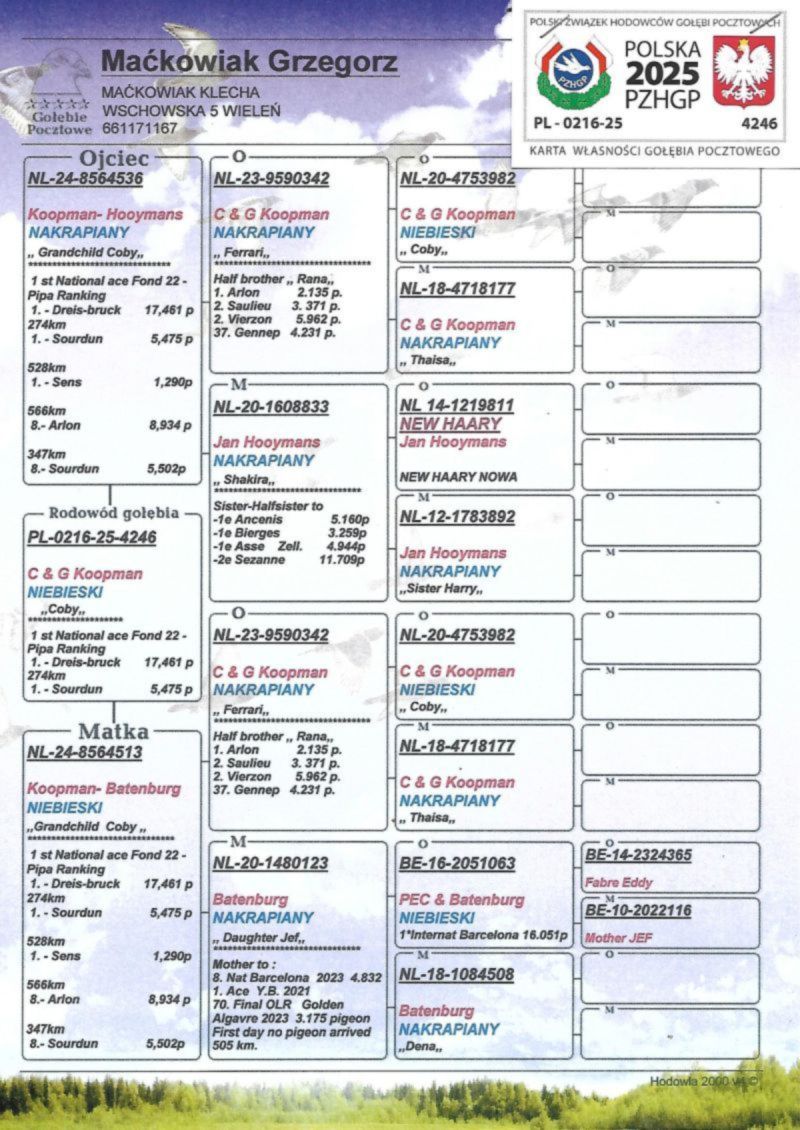 PL-0216-25-4246 Inbred Coby 1 Nat Ace Pipa Ranking - Koopman TYLKO KUP TERAZ