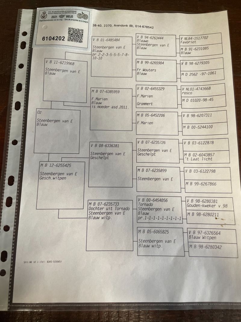 Oryginalny gołąb z hodowli Eric Van Steenbergen