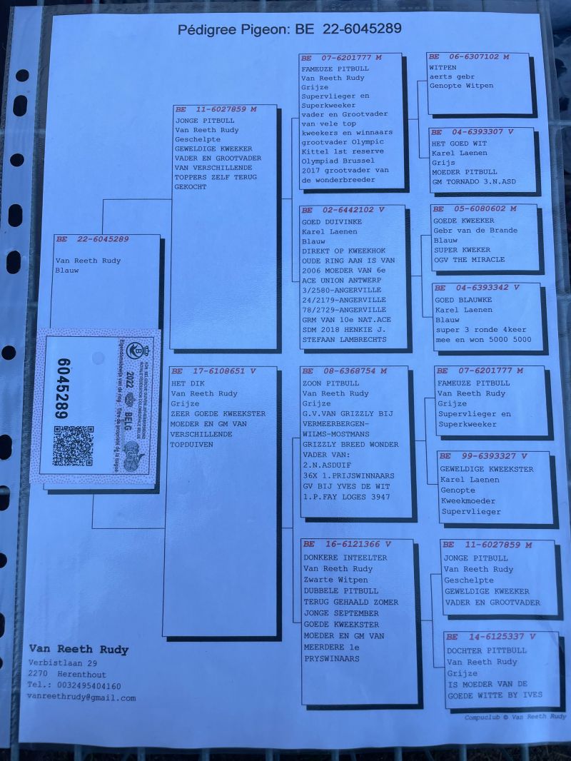 BE-22-6045289 oryg. Van Reeth Rudy - Syn "JONGE PITBULL" - Najlepszy syn "FAMEUZE PITBULL"