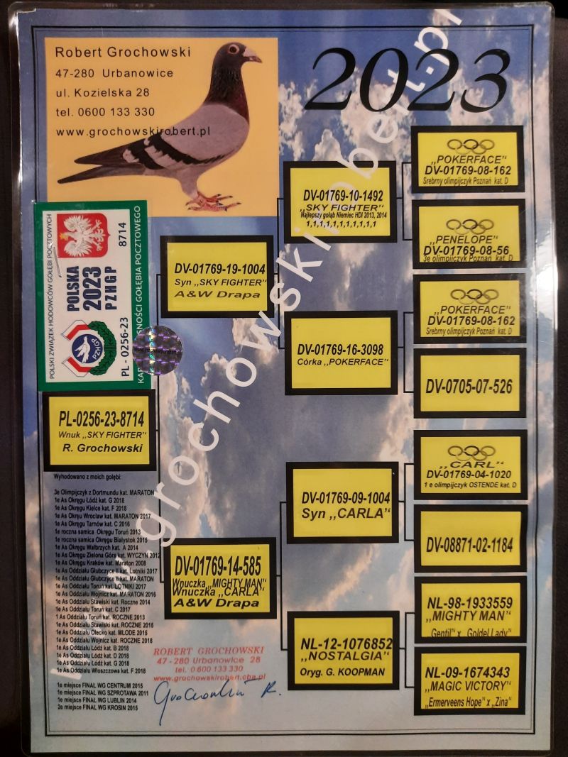 Oryginalny gołąb z hodowli Roberta Grochowskiego. Gołąb odrobaczony i zaszczepiony salmovirem. Szczegóły pochodzenia w rodowodzie. Więcej informacji pod nr tel.: 669-823-001