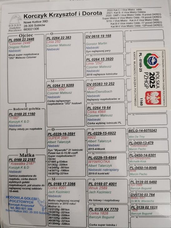Oryginalny gołąb z hodowli Krzysztof i Dorota Korczyk. Raczej samiczka. Ojciec to wnuk "252" super rozpłodowca M. Ciomer.