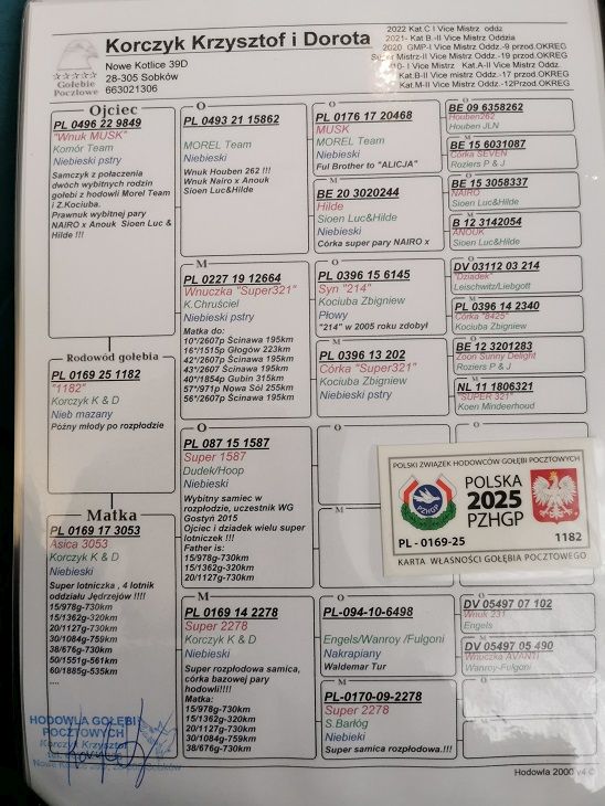 Ojciec to wnuk super rozpłodowca "MUSK" B. Morel. Matka to super lotniczka 3053 - 4 lotnik oddziału Jędrzejów. Szczegóły pochodzenia w rodowodzie. Więcej informacji pod nr tel.: 663 021 306 *Odbiór osobisty lub wysyłka (po wpłacie na konto) przez prywatnego kuriera koszt pokrywa kupujący