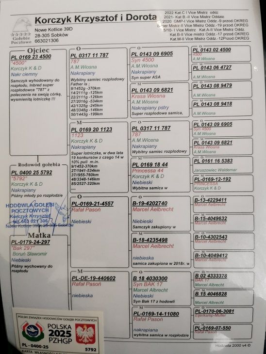 Płeć: młody gołąb Hodowca - rasa: oryg. Krzysztof i Dorota Korczyk Zakończenie: 31.01.2026 godz. 21:22