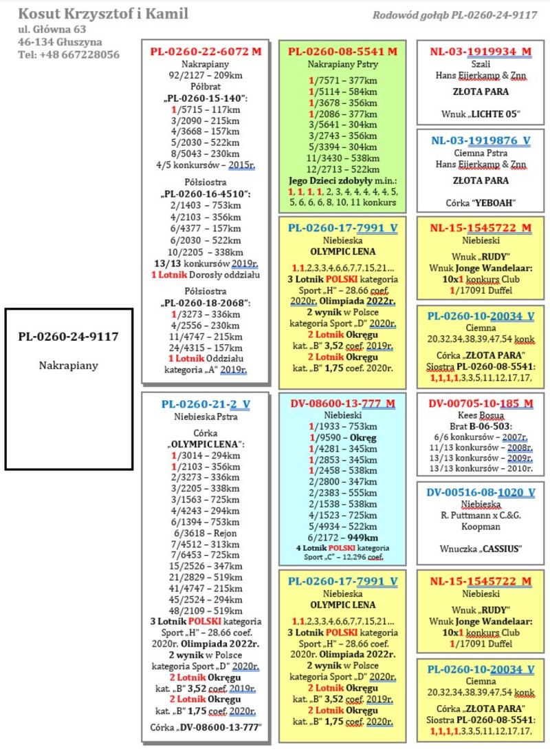 Oryginalny gołąb z hodowli Krzysztof i Kamil Kosut. Szczegóły pochodzenia w rodowodzie. Więcej informacji na stronie www.facebook.com/kosut.dobrahodowla oraz pod nr tel.: 667 228 056. Dostawa gołębi będzie realizowana po zakończeniu aukcji kurierem 165zł lub odbiór osobisty. Możliwy jest także odbiór osobisty.