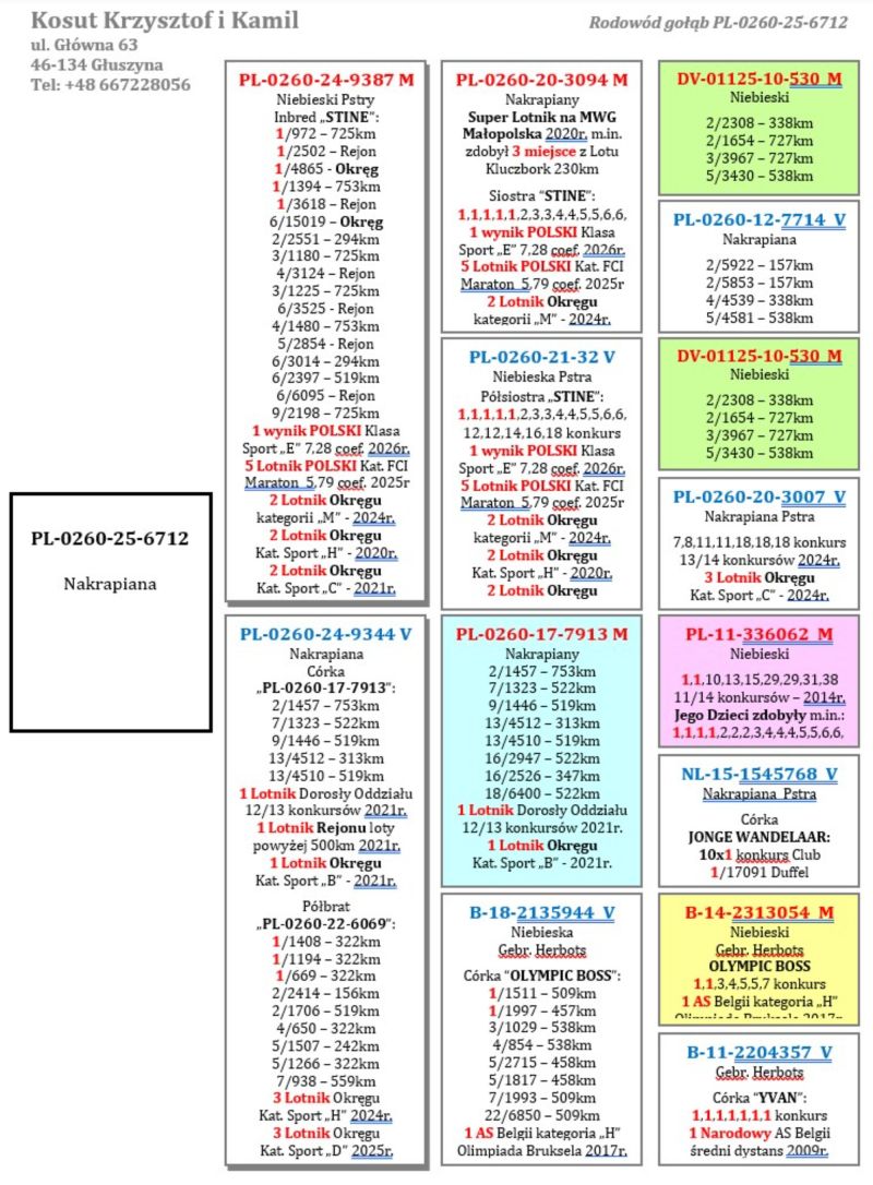 PL-0260-25-6712 - "STINE" - 1,1,1,1,1 konkurs, "7913" - 1 AS Okręgu, "OLYMPIC BOSS" oryg. Kosut K. & K. 85x1 konkurs