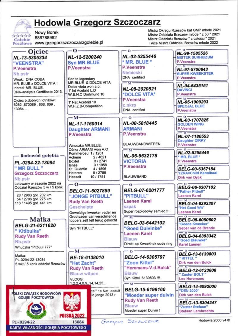 Płeć: samiec Hodowca - rasa: Pigeon Sport J.S. Zakończenie: 1.02.2026 godz. 20:42