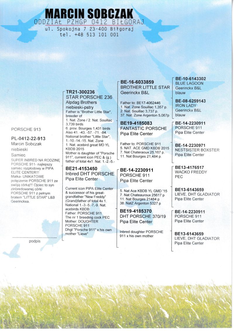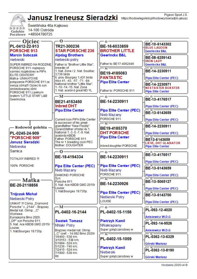 PL-0245-24-909 totalny inbred PORSCHE 911 Marcin Sobczak x Trójczak Michał