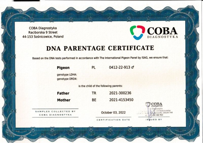 Płeć: samiec Hodowca - rasa: Pigeon Sport J.S. Zakończenie: 1.02.2026 godz. 20:44