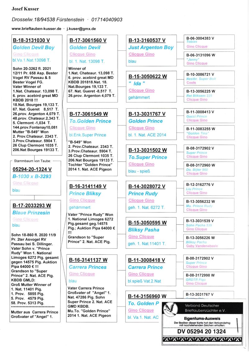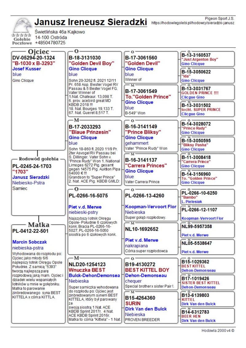 Płeć: samiec Hodowca - rasa: Pigeon Sport J.S. Zakończenie: 1.02.2026 godz. 20:48
