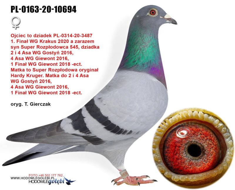 Płeć: samica Hodowca - rasa: Pigeon Sport J.S. Zakończenie: 1.02.2026 godz. 20:50