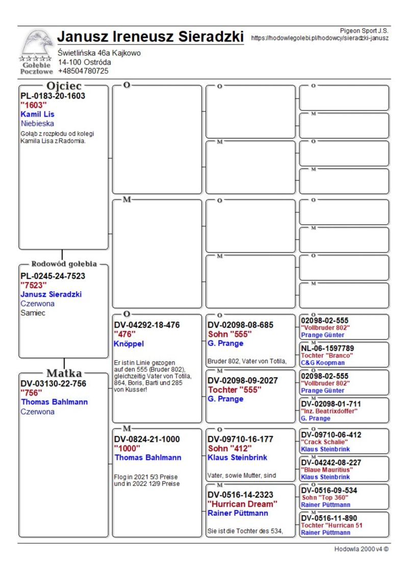 Płeć: samiec Hodowca - rasa: Pigeon Sport J.S. Zakończenie: 1.02.2026 godz. 20:56