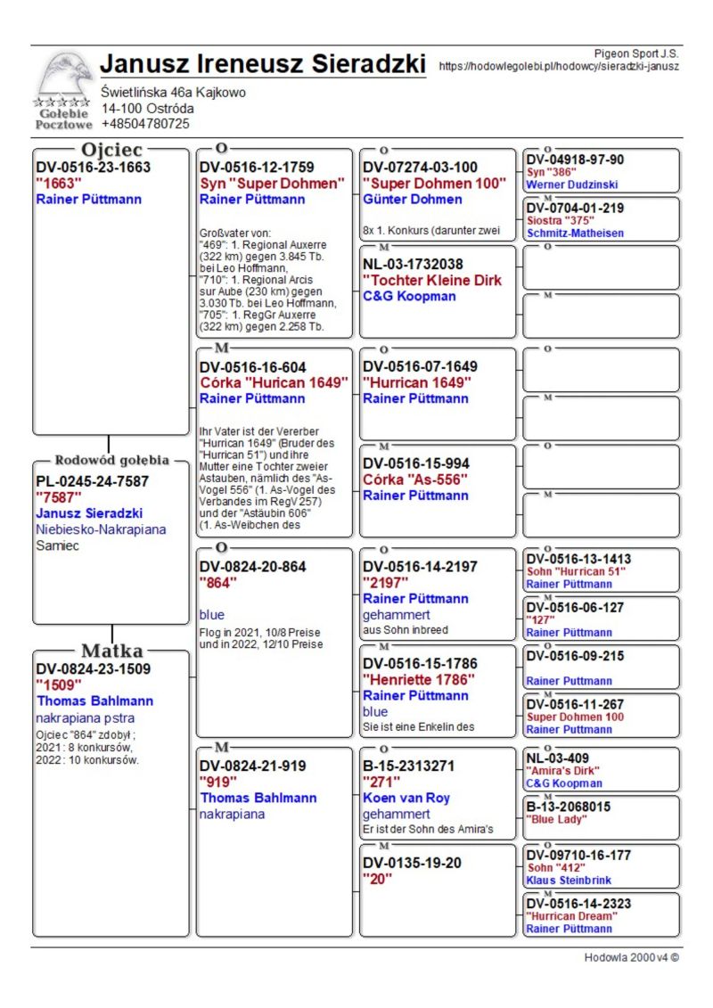 Płeć: samiec Hodowca - rasa: Pigeon Sport J.S. Zakończenie: 1.02.2026 godz. 21:10