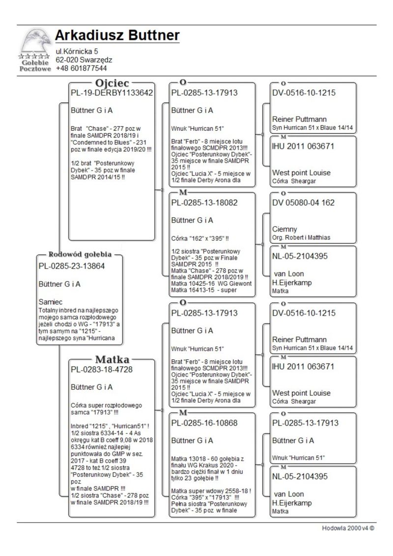 PL-0285-23-13864 Büttner G i A TOTALNY INBRED 1215 (SYN HURRICAN 51) ORAZ 17913 - JEGO NAJLEPSZEGO SYNA !