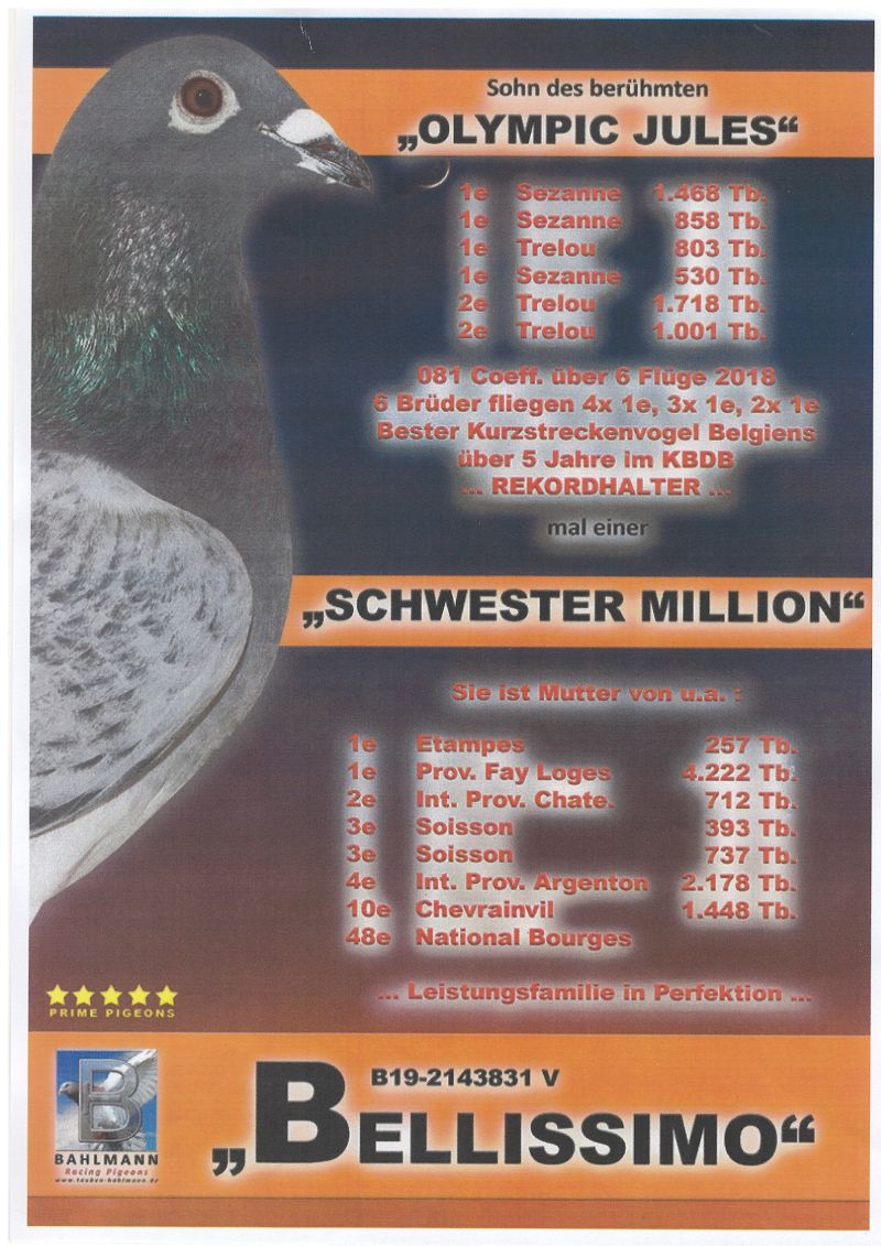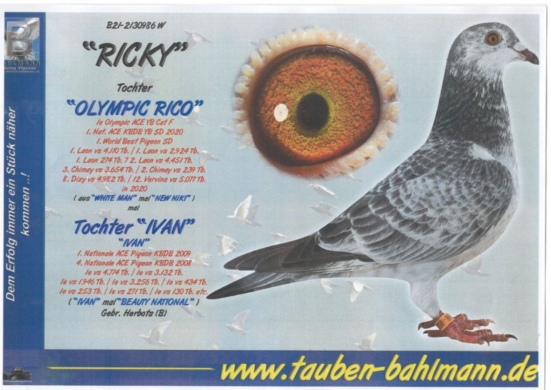 Oryginalny gołąb z hodowli Thomasa Bahlmanna. Szczegóły pochodzenia w rodowodzie. Więcej informacji pod nr tel.504780725