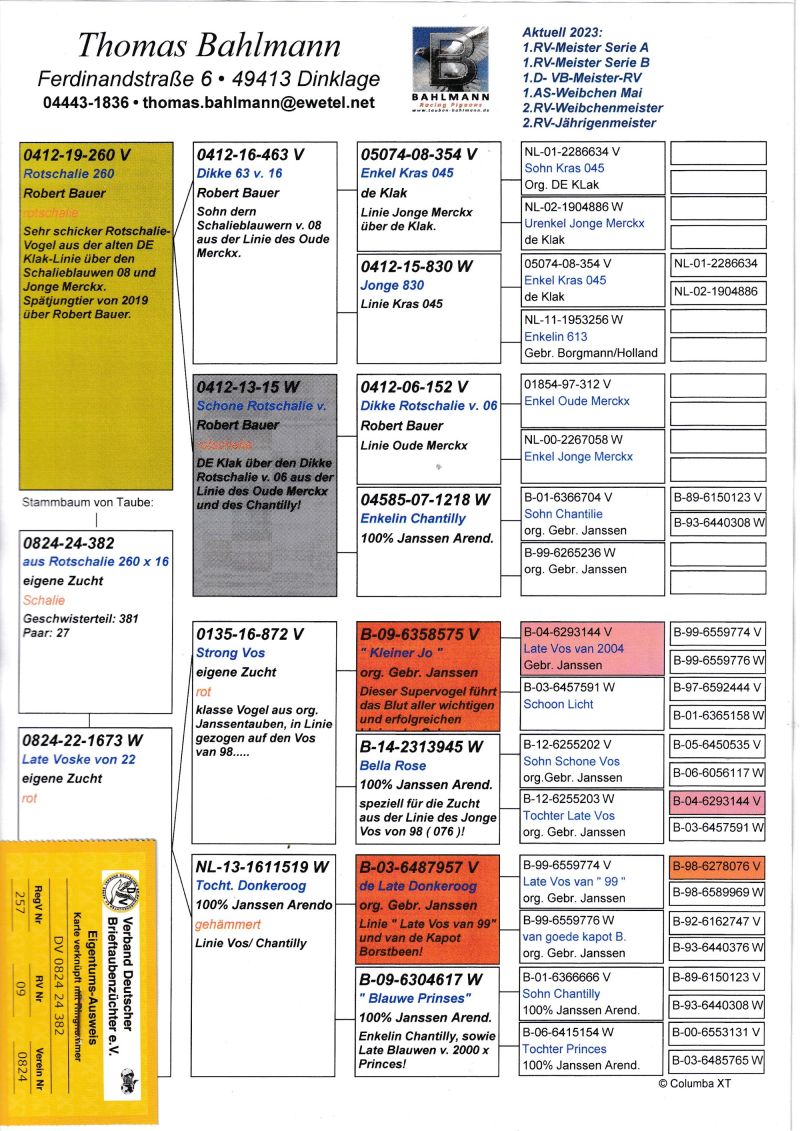 Oryginalny gołąb z hodowli Thomasa Bahlmanna. Szczegóły pochodzenia w rodowodzie. Możliwość wysyłki gołębi. Więcej informacji pod nr tel.504780725