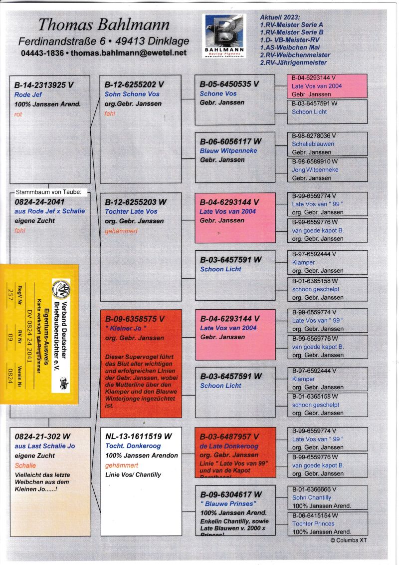 Oryginalny gołąb z hodowli Thomasa Bahlmanna. Szczegóły pochodzenia w rodowodzie. Możliwość wysyłki gołębi. Więcej informacji pod nr tel.504780725