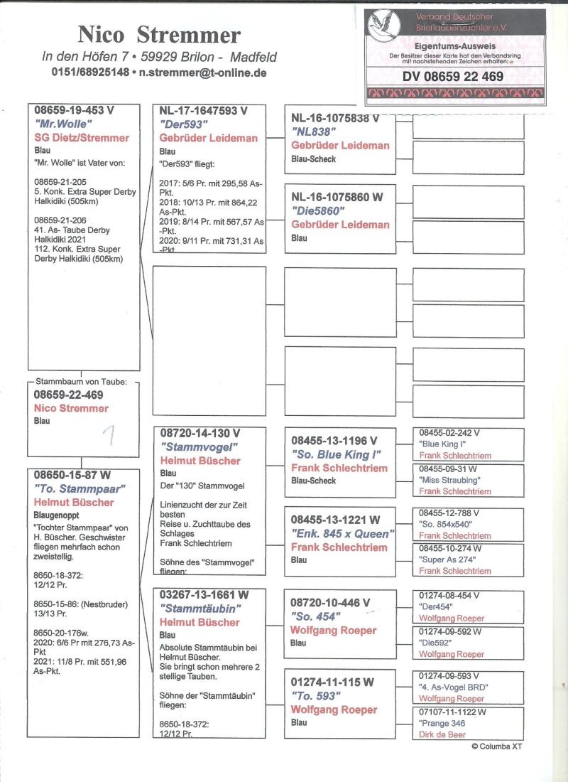 Oryginalny gołąb z hodowli Nico Stremmer,szczegóły pochodzenia w rodowodzie,więcej informacji pod nr tel,:603 312 976,transport gołębi po wpłacie pieniążków na konto ,gołębie będą dostarczane kurierem 1-5szt 180zł
