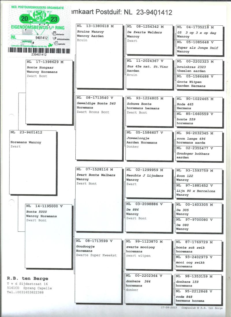 Oryginalny gołąb z hodowli R.B.ten Berge,szczegóły pochodzenia w rodowodzie,więcej informacji pod nr tel,:603 312 976,transport gołębi po wpłacie pieniążków na konto ,gołębie będą dostarczane kurierem 1-5szt 180zł