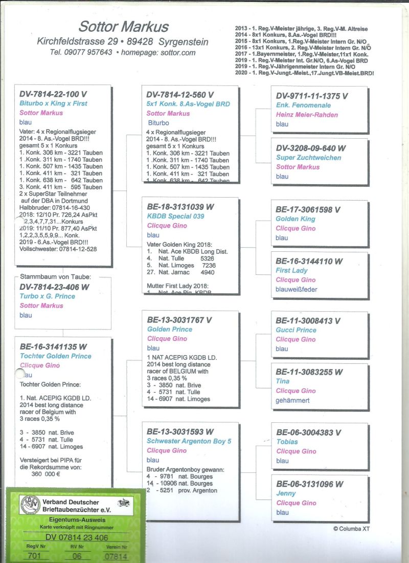 Oryginalny gołąb z hodowli Sottor Markus,gołąb z roku 2024,szczegóły pochodzenia w rodowodzie,więcej informacji pod nr tel,:603 312 976,transport gołębi po wpłacie pieniążków na konto ,gołębie będą dostarczane kurierem 1-5szt 180zł