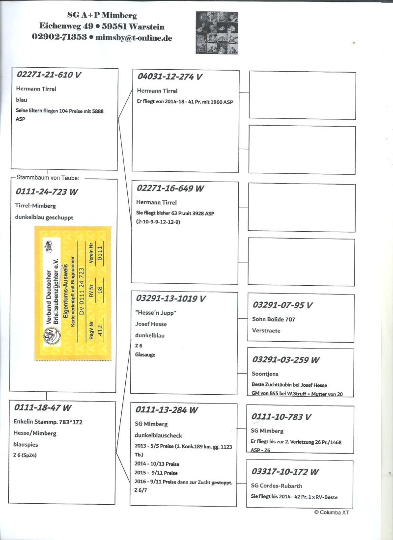 Oryginalny gołąb z hodowli SG A +P Mimberg,szczegóły pochodzenia w rodowodzie,więcej informacji pod nr tel,:603 312 976,transport gołębi po wpłacie pieniążków na konto ,gołębie będą dostarczane kurierem 1-5szt 180zł