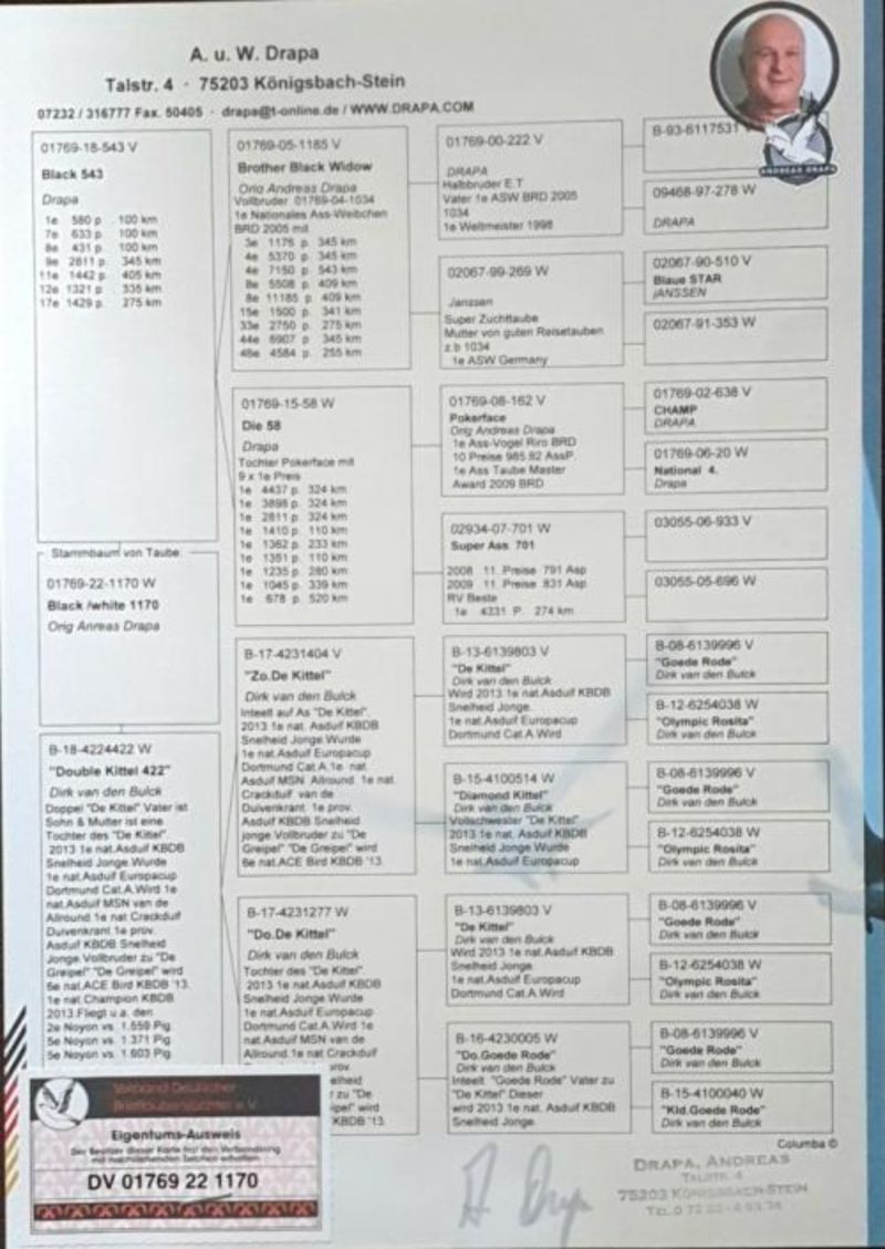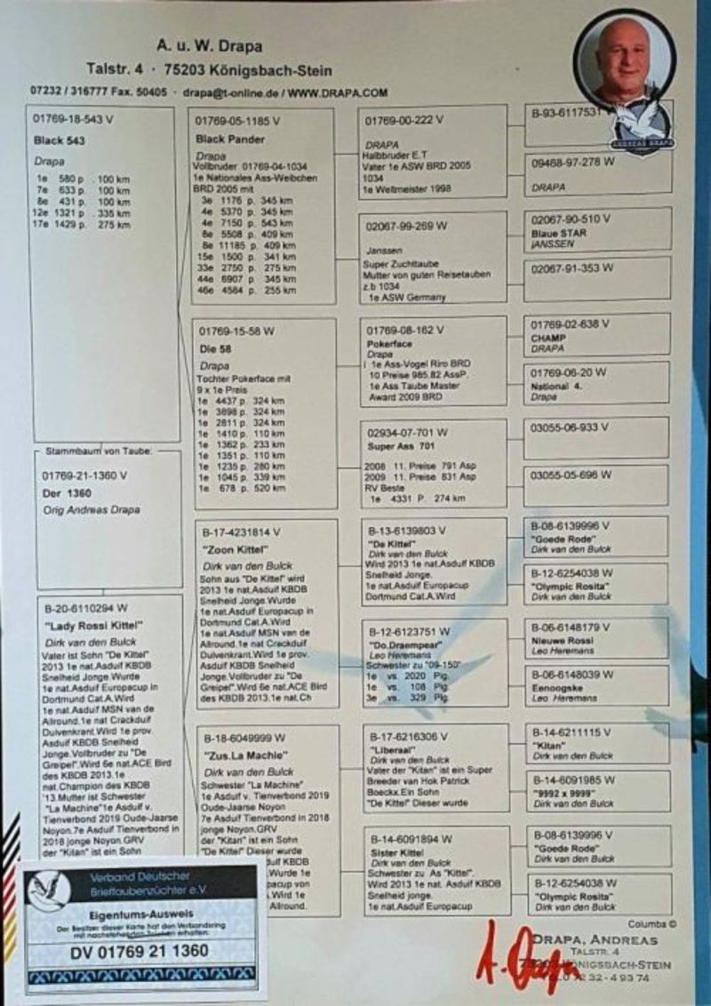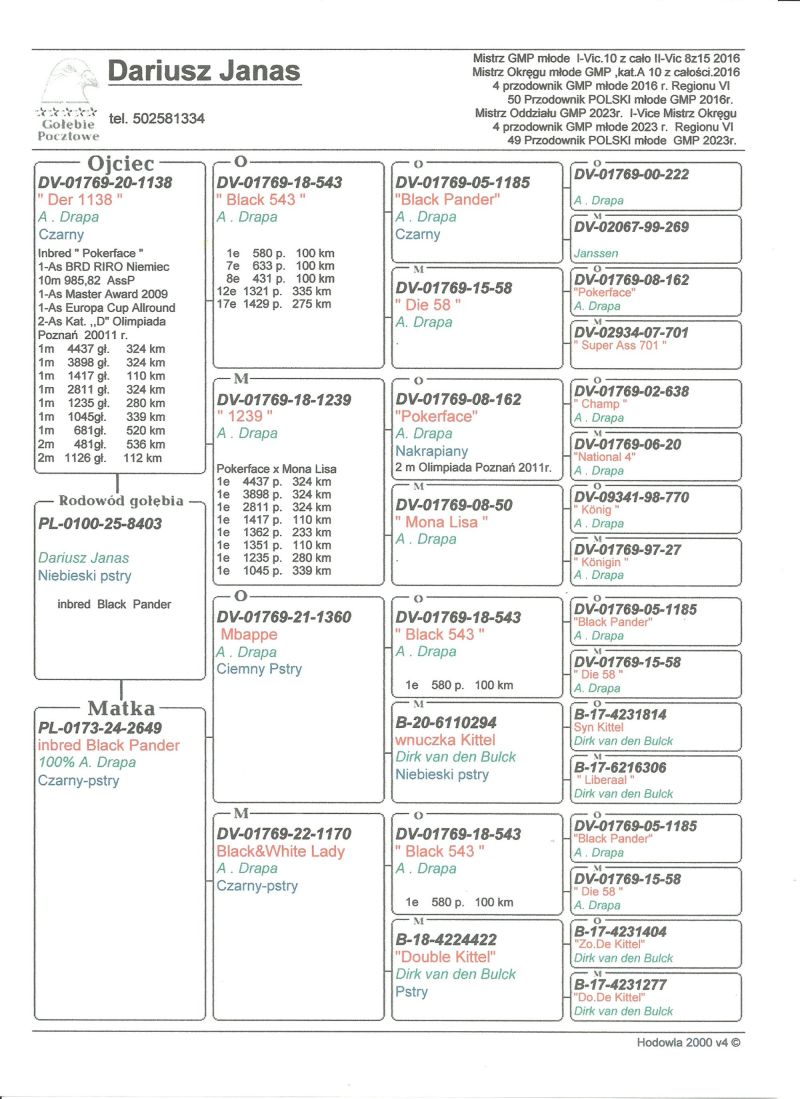 Oryginalny gołąb z hodowli Dariusz Janas . Szczegóły pochodzenia w rodowodzie . Więcej informacji pod nr. tel . 502581334 .... Wystawiany gołąb to prawdopodobnie samica......... koszt transportu do 3 szt. 120 zł. 150zł. w zależności od kuriera.