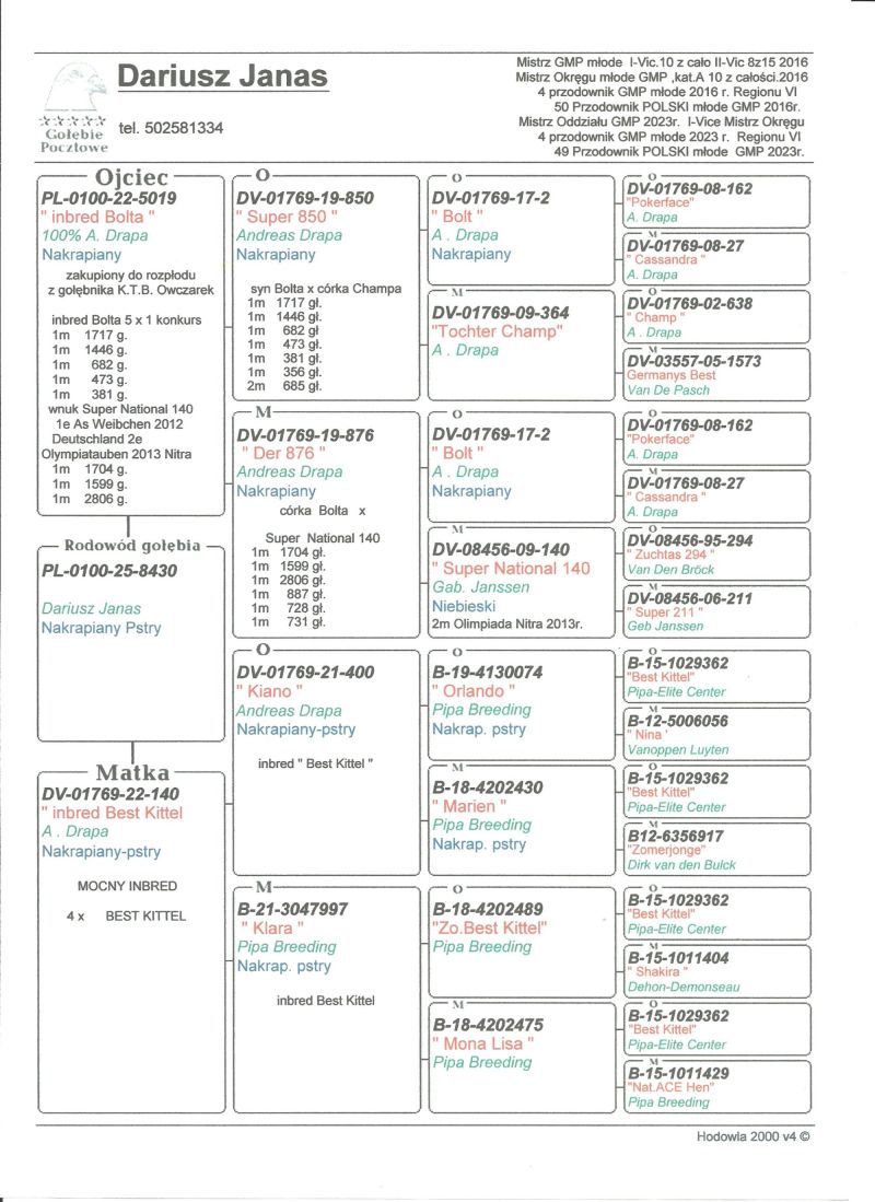 Oryginalny gołąb z hodowli Dariusz Janas . Szczegóły pochodzenia w rodowodzie . Więcej informacji pod nr. tel . 502581334 .... Wystawiany gołąb to prawdopodobnie samiec......... koszt transportu do 3 szt. 120 zł. 150zł. w zależności od kuriera.