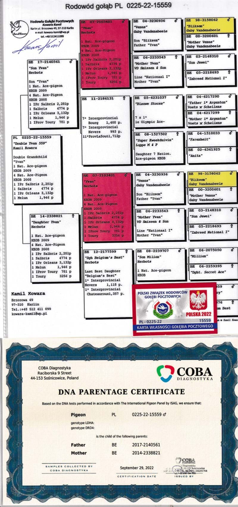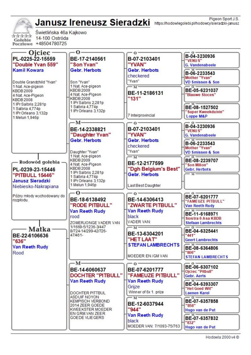 PL-0239-23-15446 2 x wnuk "YVAN" Gebr. Herbots x 2 x wnuczka "Pitbull" Van Reeth Rudy