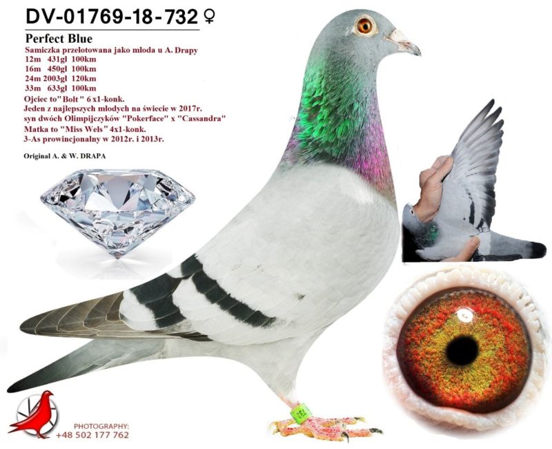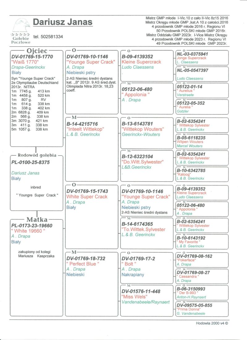 Oryginalny gołąb z hodowli Dariusz Janas . Szczegóły pochodzenia w rodowodzie . Więcej informacji pod nr. tel . 502581334 .... Wystawiany gołąb to prawdopodobnie samica......... koszt transportu do 3 szt. 120 zł. 150zł. w zależności od kuriera.
