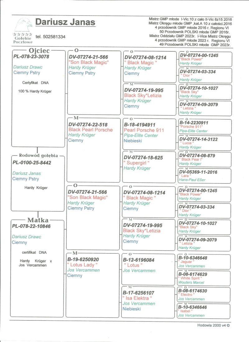 Oryginalny gołąb z hodowli Dariusz Janas . Szczegóły pochodzenia w rodowodzie . Więcej informacji pod nr. tel . 502581334 .... Wystawiany gołąb to prawdopodobnie samica......... koszt transportu do 3 szt. 120 zł. 150zł. w zależności od kuriera.