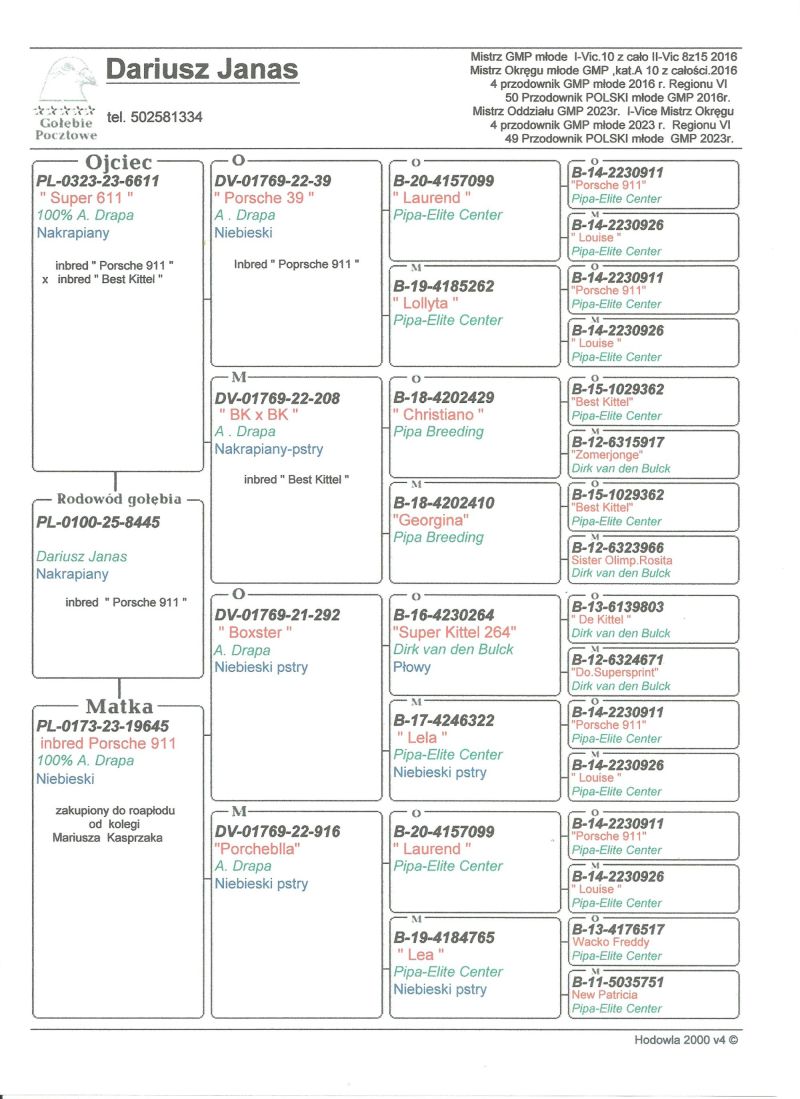 Oryginalny gołąb z hodowli Dariusz Janas . Szczegóły pochodzenia w rodowodzie . Więcej informacji pod nr. tel . 502581334 .... Wystawiany gołąb to prawdopodobnie samiec......... koszt transportu do 3 szt. 120 zł. 150zł. w zależności od kuriera.