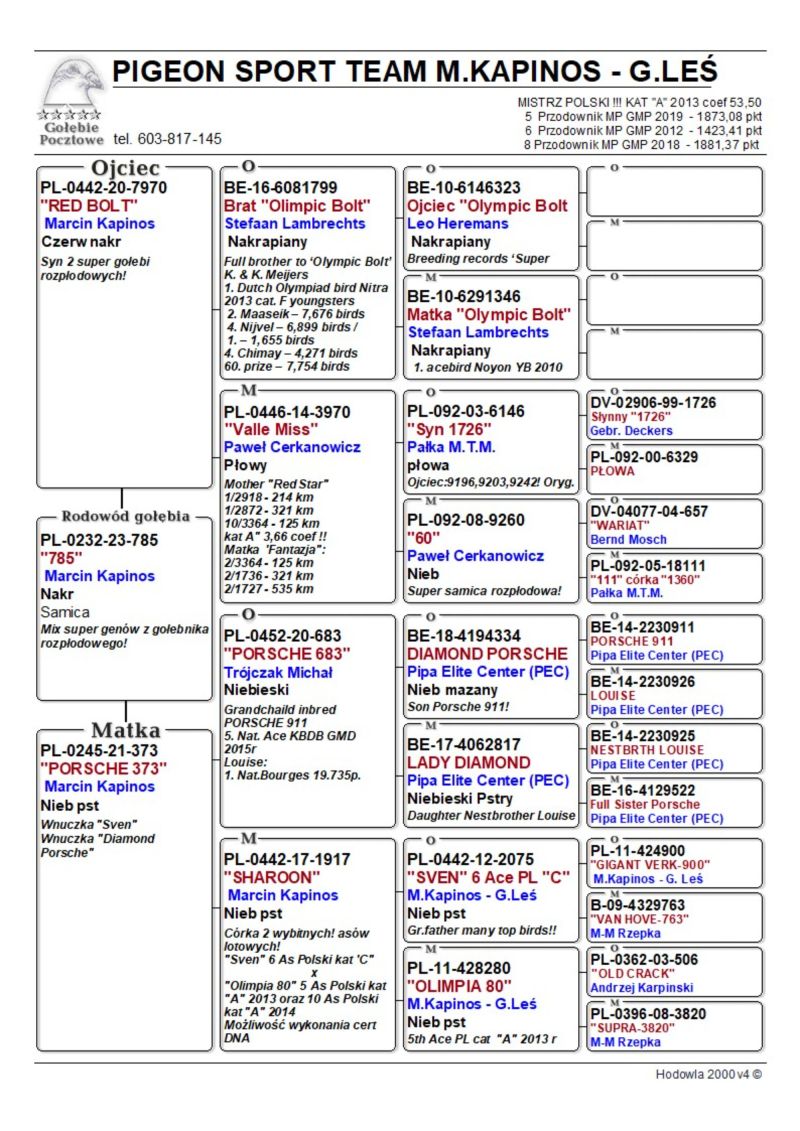 Samiczka pięknie zbudowana jest córką "Red Bolt", matka córka "Porsche 683" i "Scharoon".