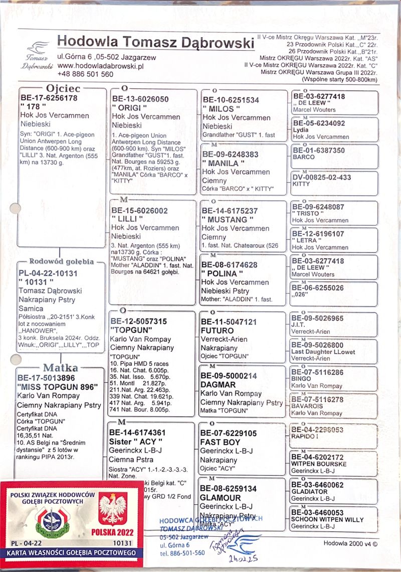 PL-04-22-10131 oryg. Hodowla Tomasz Dąbrowski