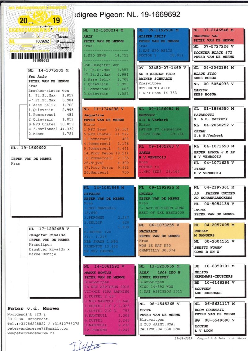 NL-19-1669692 - oryg. Peter van de Merwe, Wnuczka "Rivaldo" - Likwidacja hodowli