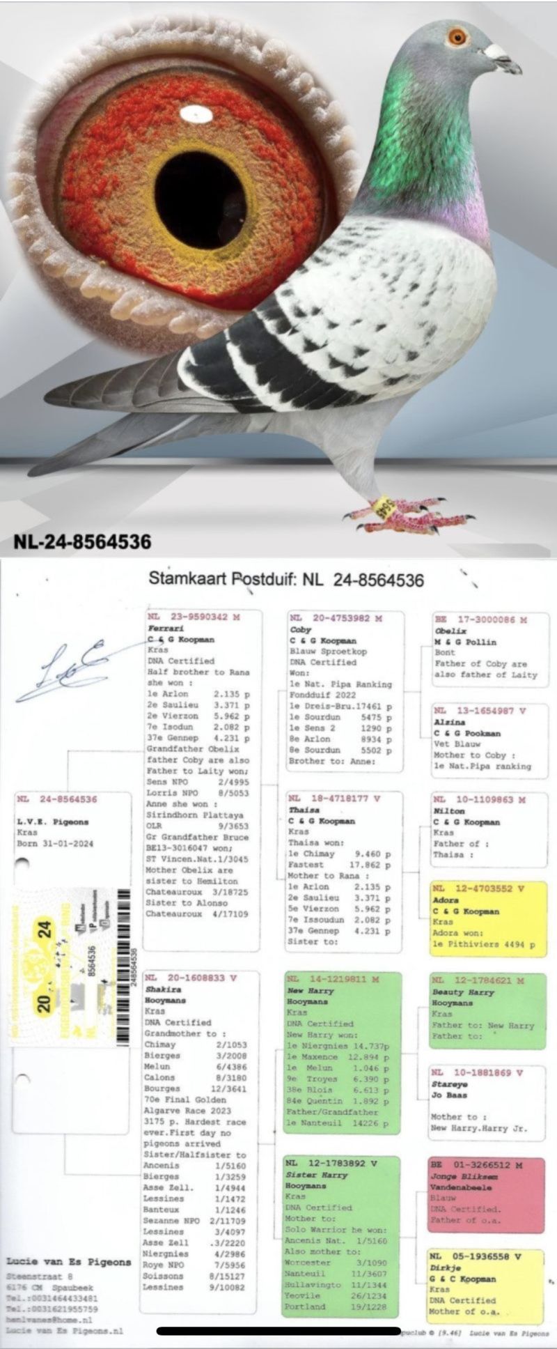 Oryginalny gołąb z hodowli Grzegorza Maćkowiaka. Szczegóły pochodzenia w rodowodzie. Więcej informacji pod nr tel.: 880 880 503