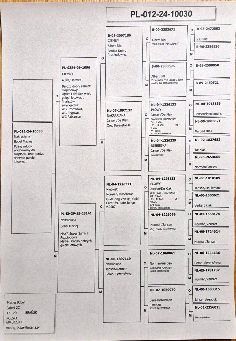 Na aukcji samczyk z połączenia wybitnych gołębi z predyspozycjami do lotów dalekodystansowych. Szczegóły w rodowodzie. Preferowany odbiór osobisty woj. podlaskie, ewentualnie dostawa kurierem po ustaleniu szczegółów