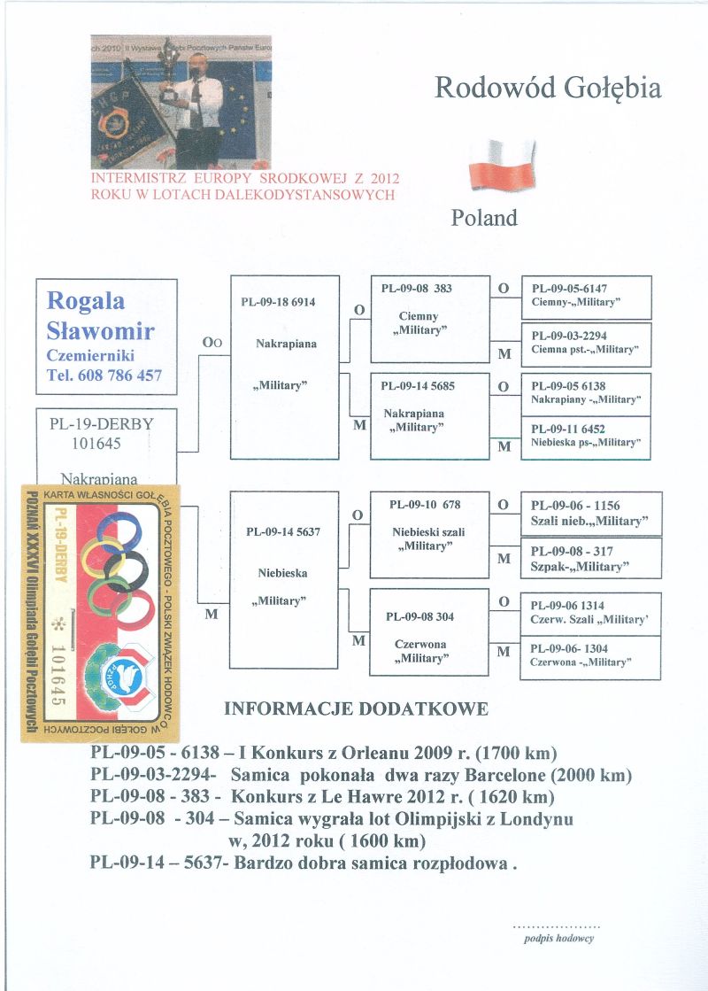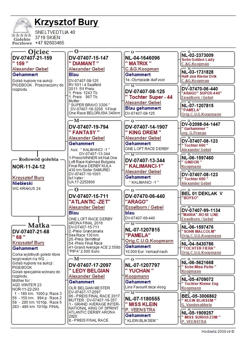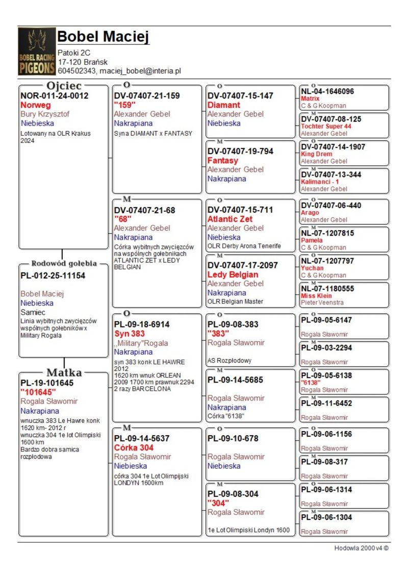 Na aukcji samczyk z połączenia zwycięzców na wspólnych gołębnikach Alexander Gebel na wybitna linię gołębi dalekodystansowych kolegi Sławomira Rogali (Military Rogala). Ojcem samczyka jest samczyk lotowany na OLR Krakus w 2024 roku, matką zaś jest oryginalna samica od Sławomira Rogali wnuczka wybitnej samicy 304 która wygrała lot Olimpijski w 2012 roku z Londynu 1600 km. Szczegóły w rodowodzie.Preferowany odbiór osobisty woj. podlaskie, ewentualnie dostawa kurierem po ustaleniu szczegółów