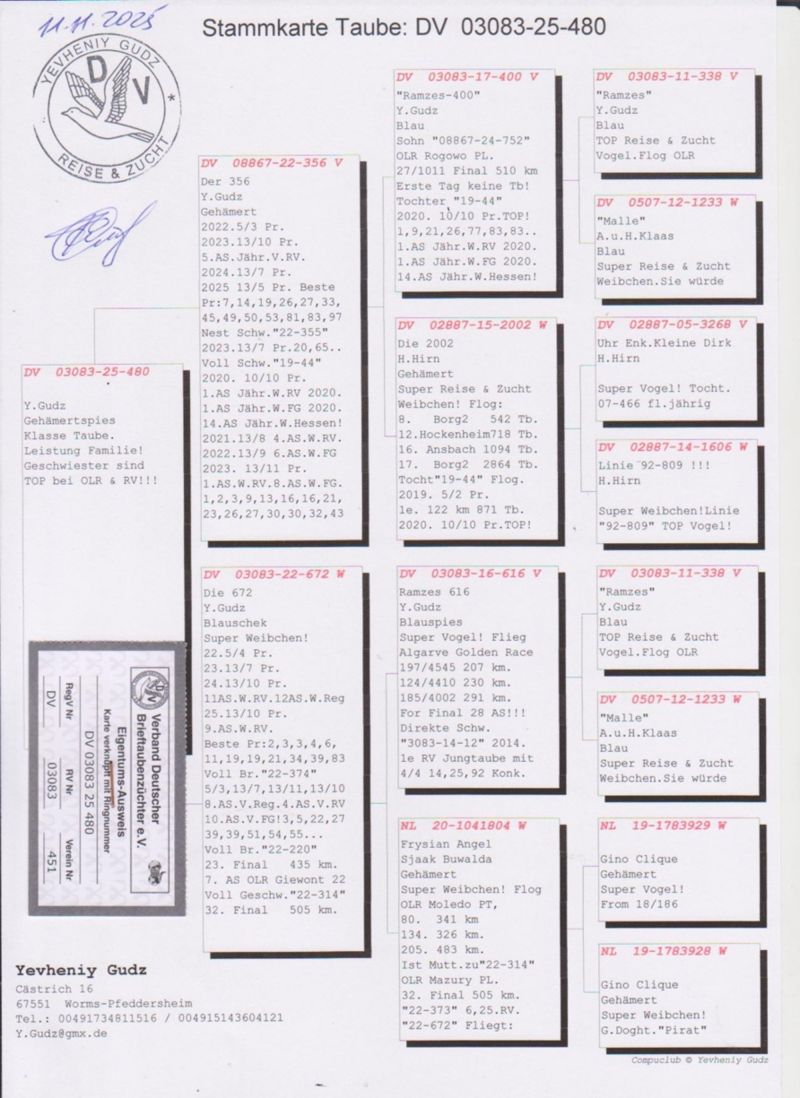 Płeć: młody gołąb Hodowca - rasa: Y.Gudz Zakończenie: 5.02.2026 godz. 20:03