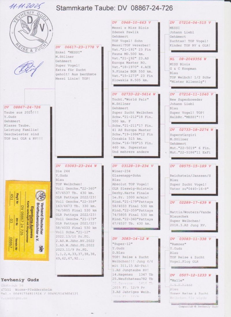 DV-08867-24(25)-726 Oryg.Y.Gudz. M.Sölner(MESSI) x Super Samica Siostra 2x1 oraz OLR Pattaya top wyniki!!!