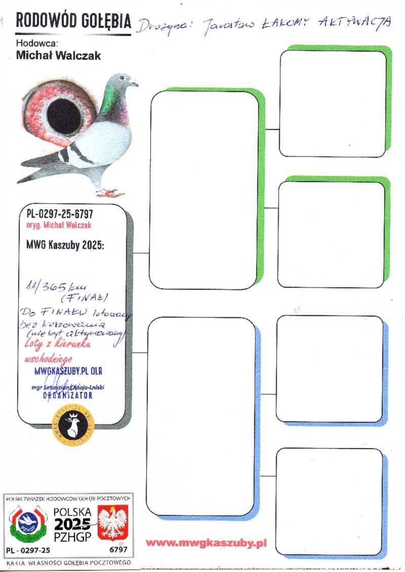 Płeć: młody gołąb Hodowca - rasa: Michał Walczak Zakończenie: 8.02.2026 godz. 21:12