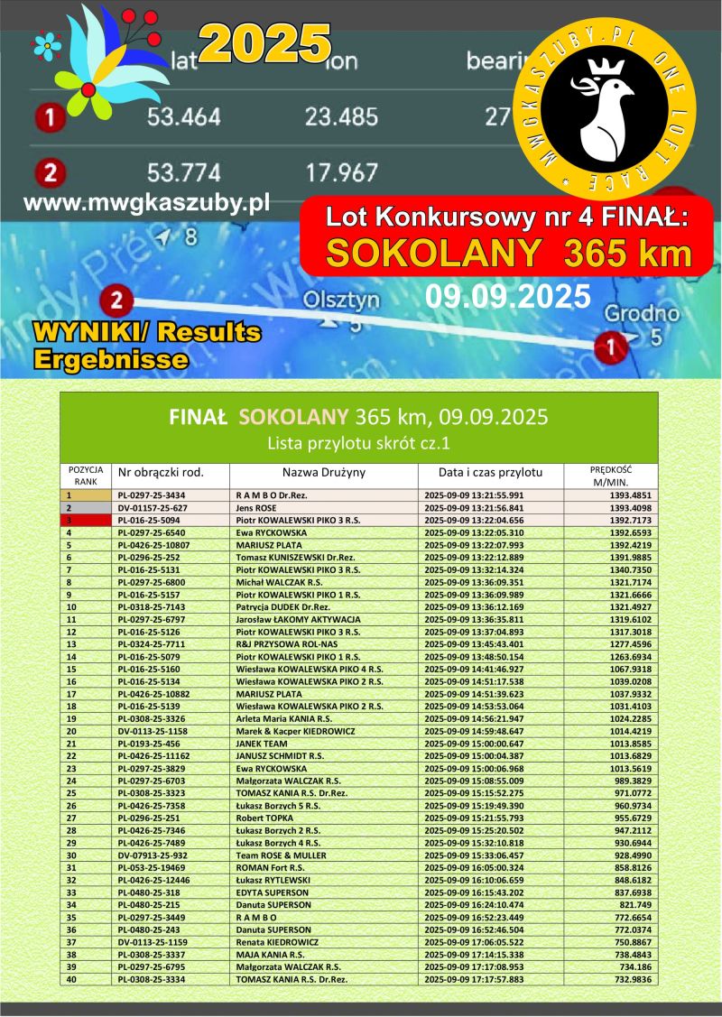 Gołąb (11 MIEJSCE z lotu Finałowego) brał udział w zawodach na Wspólnym Gołębniku KASZUBY. Więcej informacji w rodowodzie i załącznikach. Kontakt do Właściciela Gołębnika tel.601686344 (Sebastian Ostoja-Lniski). Informujemy poza tym, że rozpoczęły się zapisy na sezon 2026. Serdecznie zapraszam do rywalizacji..... Uwaga! Koszty związane z transportem pokrywa nabywca gołębia. W zależności od kuriera wynoszą one około 150zł. Można również odebrać gołębia osobiście lub we własnym zakresie zorganizować kuriera. Powyżej sylwetki gołębia znajduje się video z jego prezentacją.