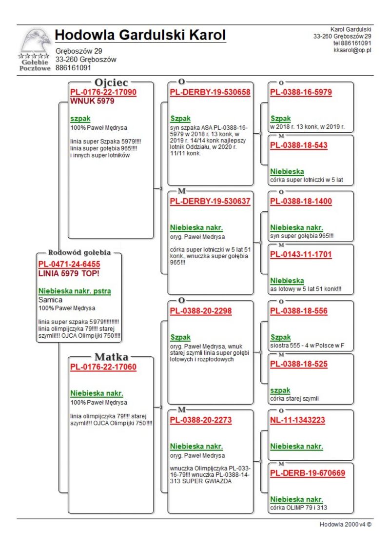 PL-0471-24-6455 - 100% P. Mędrysa linia Starej Szymli, Olimpijczyka 79, Olimpijki 750, szpaka 5979 TOP