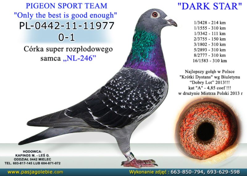 Szczegóły pochodzenia w rodowodzie. Możliwość wysyłki gołębi. Więcej informacji pod nr tel.504780725