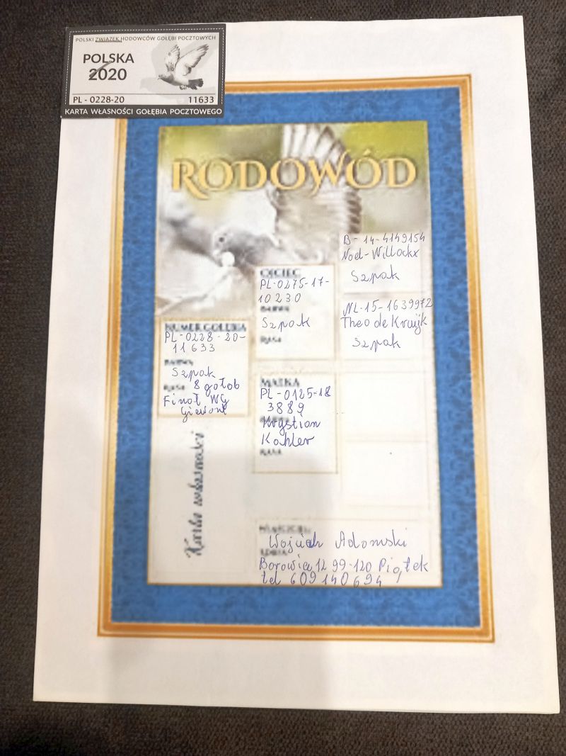 Oryginalny gołąb z hodowli Wojciecha Adamskiego. Szczegóły pochodzenia w rodowodzie. Więcej informacji pod nr tel.: 600 628 026