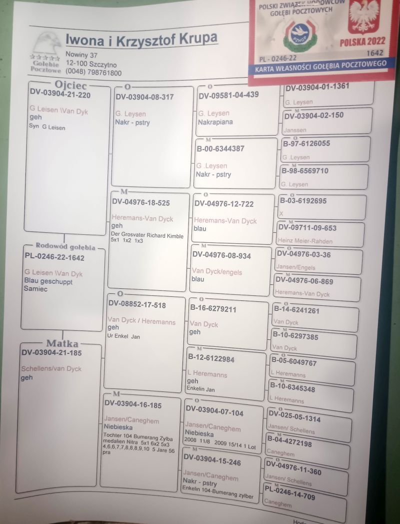 Oryginalny gołąb z hodowli Iwona i Krzysztof Krupa. Samiec o ładnej budowie. Szczegóły pochodzenia w rodowodzie. Więcej informacji pod nr tel.: 515442922